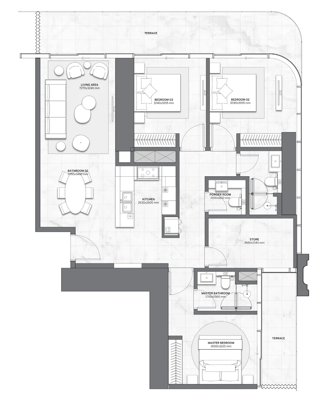 Inside, every detail speaks of precision—bespoke finishes, curated materials, and an atmosphere of elevated living.